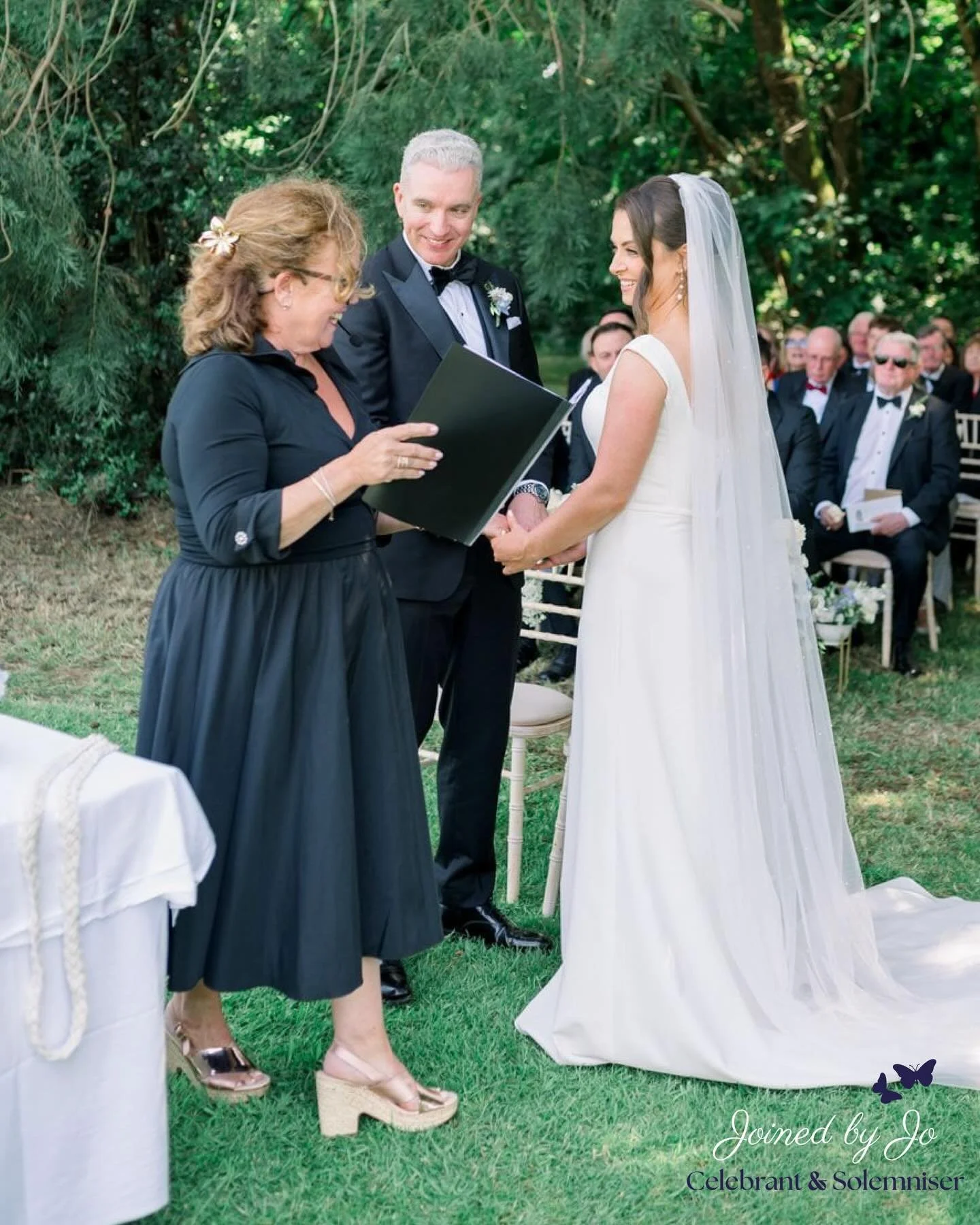 At Joined by Jo, I create bespoke wedding ceremonies that reflect the beauty of your connection, your values, and your vision for the future.