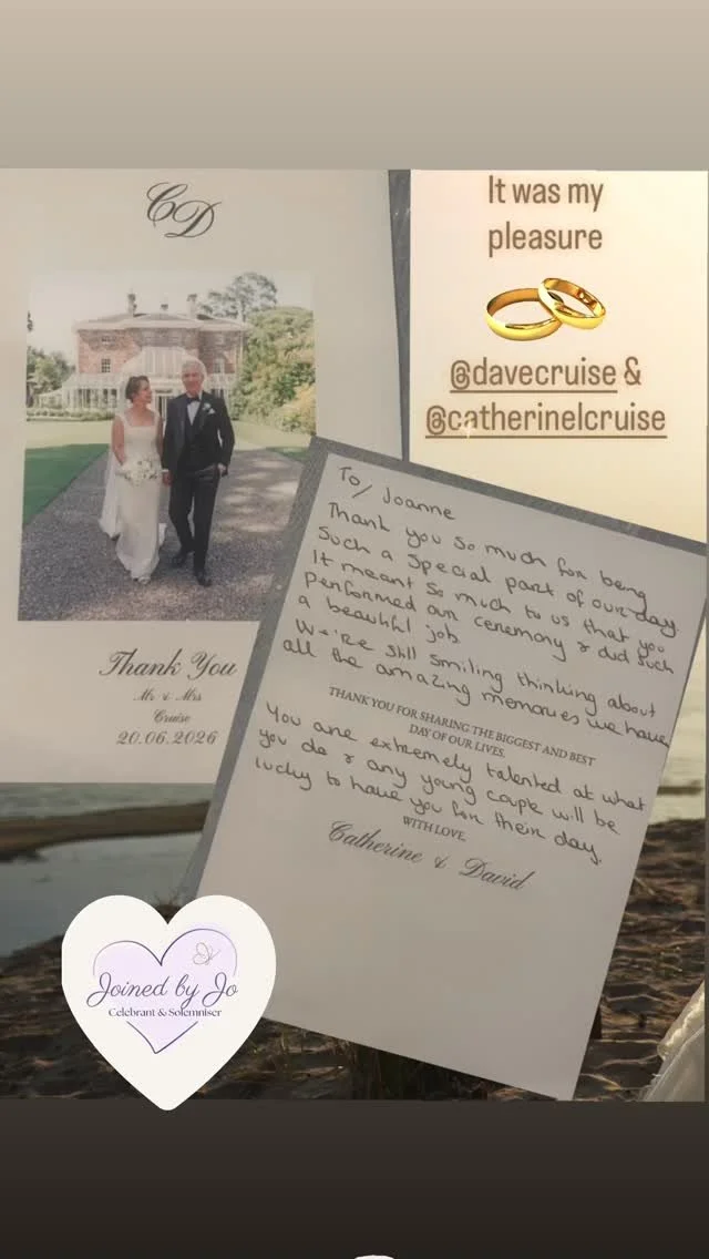 What truly made our ceremony unforgettable was how incredibly personal Joanne made everything feel. She took the time to genuinely get to know us, listening to our story and our hopes for the day. For us, it was even more special because Joanne has known David since he was just seven years old, which added such a beautiful and heartfelt layer of history and connection to the ceremony. Her recommendations for readings and what to include in the ceremony were absolutely spot on, perfectly complementing our story and making the whole event even more meaningful. The ceremony she crafted for us wasn't just beautiful, it felt uniquely ours. Every word resonated with our journey, making it feel intimate, authentic, and incredibly special.